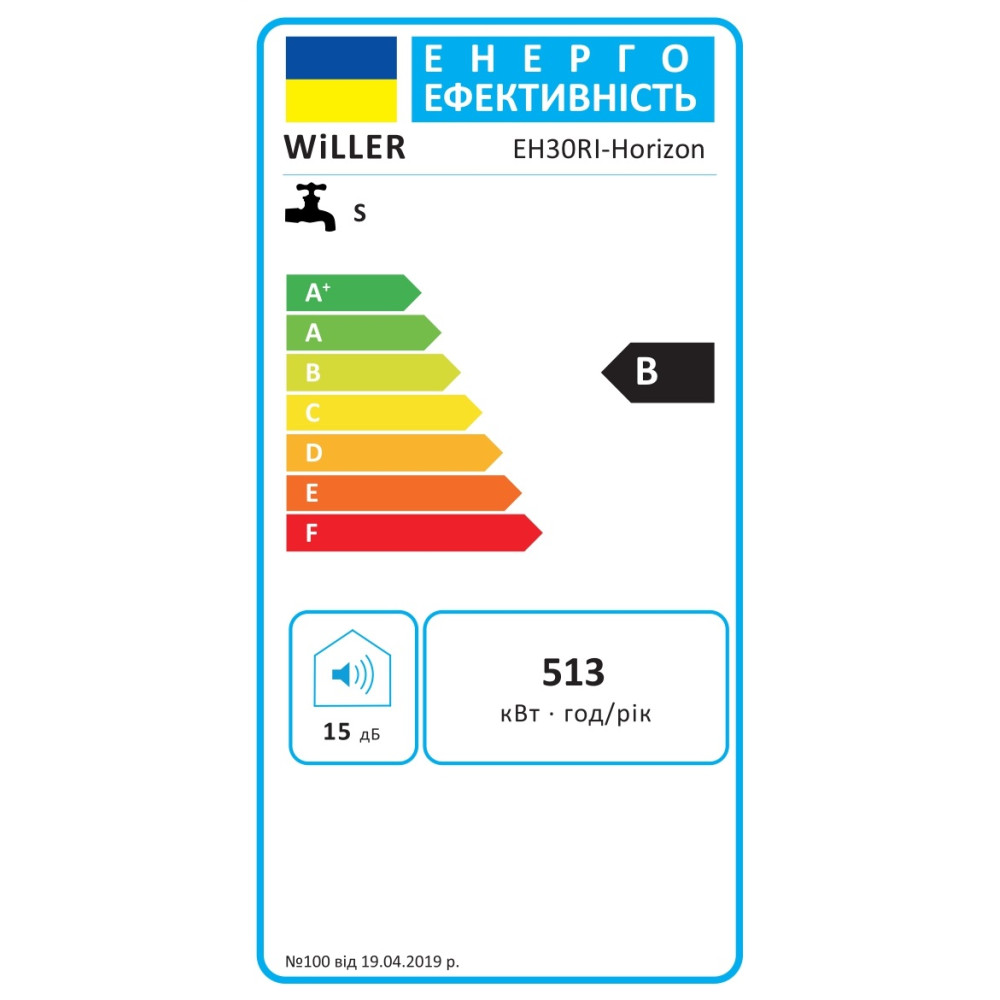 Willer EH30RI HORIZON - надежный накопительный электрический бойлер цилиндрической формы объемом 30 литров с горизонтальным расположением. Оснащен двойным погружным (мокрым) нагревательным элементом общей мощностью 2,0 кВт. Внутренний бак, изготовленный из стали, покрытой титанокварцевой эмалью, и увеличенный магниевый защитный анод обеспечивают длительный срок эксплуатации. Предназначен для установки в местах, где не помещаются вертикальные, под потолком..